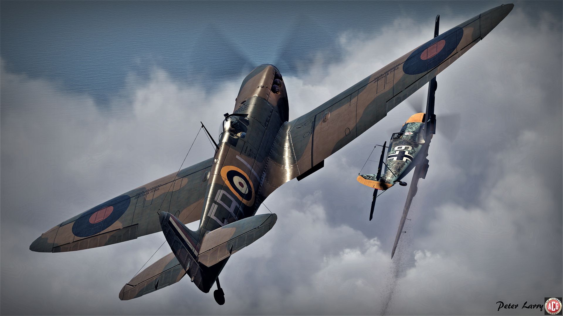 http://i1364.photobucket.com/albums/...4.jpg~original http://i1364.photobucket.com/albums/...e.jpg~original Some background information about this famous shot. For the ones who are interested ;) "Hawker Hurricane Mk. I aircraft of 85 Squadron Royal Air Force from Church Fenton, Yorkshire, England during Saturday the 5th of October 1940. They are undertaking a Squadron "BALBO" for the benefit of Official Air Ministry Photographer Mr. B. J. Daventry. 12 aircraft participated their pilots were Squadron Leader Peter Wooldridge Townsend, Sergeant Ernest Reginald Webster, Sergeant George Ernest Goodman, Flight Lieutenant James Eglington Marshall, Flying Officer John Allman Hemingway, Pilot Officer William Henry Hodgson, Flight Lieutenant Geoffrey Allard, Sergeant Kenneth William Gray, Pilot Officer François de Labouchère, Pilot Officer Émile Fayolle, Sergeant Konrad Antoni Muchowski and Sergeant Paleniczer. Mr. B. J. Daventry flew in a borrowed 306 Squadron Royal Air Force Miles Master aircraft to undertake the photography. Identified Hawker Hurricane Mk. I aircraft from left to right are as follows; V6611 (VY-U), P3961 (VY-G) as flown by Flight Lieutenant Geoffrey Allard, P3854 (VY-Q), V6761 (VY-O), V6760 (VY-X),V7440 (VY-M) and P3408 (VY-K). Larry |