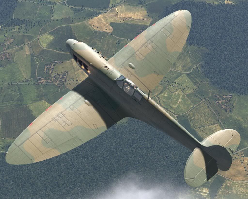 Setback's brown-green generic Spitfire MkI skin, new and weathered.